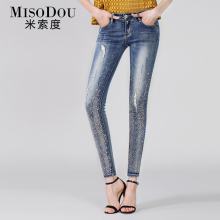 米索度镶钻牛仔裤女九分裤春新款弹力9分裤铅笔小脚裤显瘦女裤子