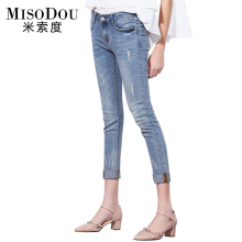 米索度春季九分牛仔裤女破洞薄款小脚裤修身9分裤弹力铅笔裤女裤
