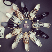 方头星星松糕鞋女春秋厚底坡跟单鞋真皮系带潮女鞋防水台英伦皮鞋