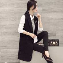 2017春装新品韩版无袖显瘦背心马夹 厚款女装西装外套中长款马甲