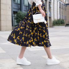春夏雪纺百褶裙韩版新款高腰碎花半身裙女中长款复古长裙a字裙子