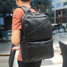 韩版男士双肩包大学生书包男时尚潮流背包黑色休闲旅行pu皮电脑包