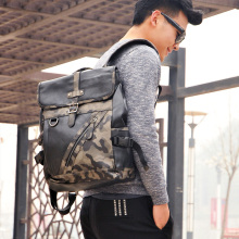 休闲双肩包男士背包韩版学生书包旅行电脑包pu街头时尚迷彩潮流