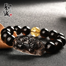 艺诚轩 5A级金曜石貔貅双金眼手串 黑曜石貔貅手链男女款佛珠手链