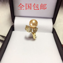 天然海洋贝母珍珠 可调节尺寸 金色正圆925银戒指 送女朋友包邮