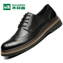 木林森男鞋秋冬季潮流男士厚底布洛克雕花休闲皮鞋商务休闲鞋子男