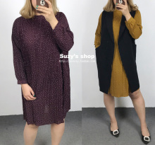胖MM17春夏新款韩版显瘦圆领长袖小圆点百褶连衣裙打底裙大码女装
