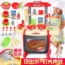 加厚版可出水仿真儿童厨房厨具带音乐灯光多功能餐具过家家玩具