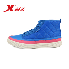 特步女鞋棉鞋2017春秋新款高帮运动鞋滑板鞋时尚耐磨休闲鞋女板鞋