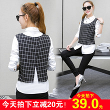 阔腿裤套装女2017春装新款韩版春季高腰显瘦九分阔腿裤马甲三件套