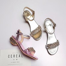 一字扣带中跟凉鞋女夏粗跟2017年新韩版chic学生水钻罗马低跟大码