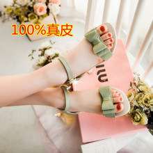 真皮凉鞋女夏平底2017新韩版蝴蝶结一字扣带学生平跟凉鞋女百搭43