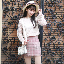 小镇姗姗 幻境迷雾 韩版刺绣透视蕾丝衫大码宽松吊带两件套上衣#
