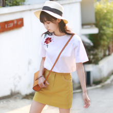 小镇姗姗 韶光 基础款百搭舒适清新花朵刺绣印花纯棉全白色t恤女#