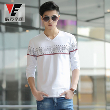 男士长袖t恤春秋装修身保暖印花长t男韩版v领休闲打底衫春季男t恤