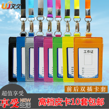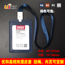 优和6820皮质证件卡套双面透明工作证门禁卡套胸牌工牌胸卡套挂绳