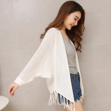 春夏季新款女装薄款镂空针织开衫蝙蝠衫韩版流苏披肩外搭毛衣外套