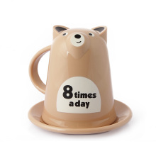 homee日式可爱熊动物马克杯带盖 奶茶牛奶咖啡杯卡通儿童倒立水杯