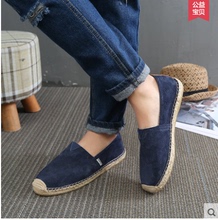 2017春夏季新款休闲帆布鞋男韩版潮布鞋渔夫鞋懒人鞋一脚蹬草编鞋