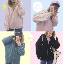 ins韩国uzzlang学院风chic街拍超大版型BF全棉毛圈卫衣连帽外套