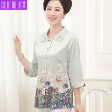 中老年人女装春装T恤打底衫宽松衬衣妈妈装衬衫长袖中年夏装上衣