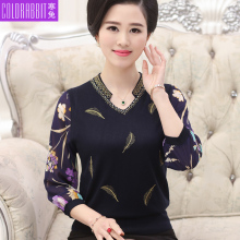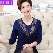 中老年女装春秋针织衫长袖妈妈装毛衣套头中年妇女春装打底衫T恤