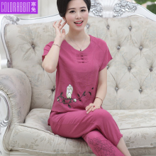 妈妈装夏装套装短袖t恤中老年女装两件套宽松中年妇女时尚40-50岁