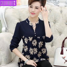 妈妈装春装雪纺T恤中老年人女装夏装长袖上衣中年打底小衫40-50岁