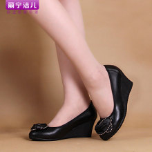 丽宁洁儿时尚真皮女鞋韩版坡跟妈妈鞋单鞋牛筋底女士皮鞋中年高跟