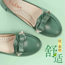 天意伦 妈妈鞋单鞋 真皮软底平跟牛筋底皮鞋 中老年大码女鞋春秋