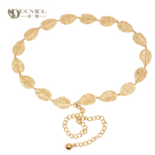 多一度欧美大牌叶子装饰金色礼服细腰链女士装饰松紧金属腰链细