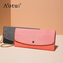 奥图新款珍珠鱼纹牛皮手拿包女长款钱包欧美钱夹女大容量手包票夹