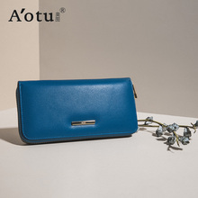 奥图新款手拿包女长款牛皮钱包欧美大容量简约钱夹软皮女士手包潮