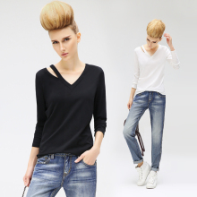 【2件259】COCOBELLA 春装V领镂空女修身显瘦长袖百搭棉T恤TE41