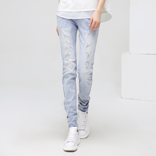 COCOBELLA2017春季新款欧美范弹力修身小脚破洞女休闲牛仔裤PT121