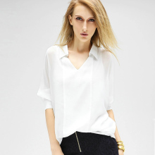 COCOBELLA 2017春季V领微透视拼接衬衣女中长款雪纺衬衫HT17
