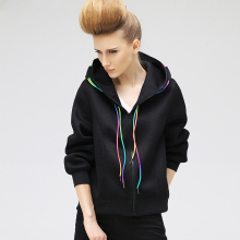 COCOBELLA 2017春季新品彩虹抽绳女网眼空气层连帽拉链卫衣CT387