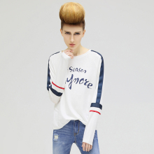 COCOBELLA春夏2017拼色长袖字母印花百搭女士基础宽松T恤TE458