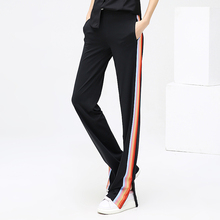 COCOBELLA 2017春季彩虹条纹拼接侧拉链运动休闲女长裤PT212B