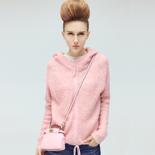 COCOBELLA春季时尚百搭显瘦外套女纯色连帽开衫毛衣YN137