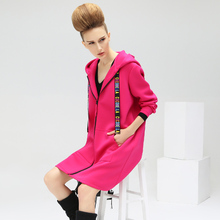 COCOBELLA2017春季新品中长款宽松长袖外套女士连帽拉链卫衣CT339