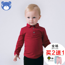 恰恰熊秋季男童纯色长袖T恤 POLO衫 纯棉 儿童 婴幼儿宝宝 0-3岁