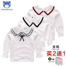 恰恰熊秋季娃娃翻领长袖T恤 纯棉 打底衫 汗衫 秋衣 家居服 女婴