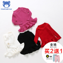 恰恰熊秋季纯色翻领长袖T恤 纯棉 打底衫 汗衫 秋衣 家居服 女婴