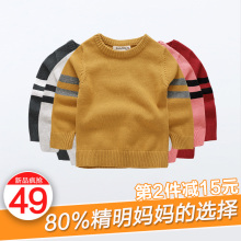 2016春秋新款童装套头圆领打底衫男女童纯棉休闲条纹长袖针织毛衣