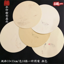 圆形宣纸团扇扇面 木板水印半生熟粉彩宣纸 经文小楷书法小品专用