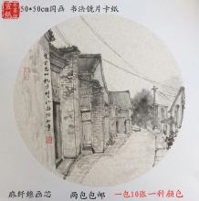 软卡50*50cm仿古生宣纸圆形空白卡纸镜片书法创作国画写生用熟宣