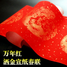 包邮安徽宣纸加厚万年红对联宣纸龙凤洒金手写空白瓦当春联纸门对