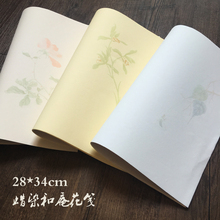 四尺四开半生熟仿古做旧宣纸10张梅兰竹菊复古信笺34*70书法抄经