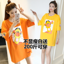 胖mm大码女装夏装新款韩版卡通短袖t恤裙时尚中长款加肥加大200斤